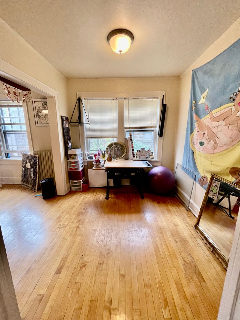 Gorgeous one bedroom corner apartment with hardwood floors and tons of vintage charm! Lots of classic built-ins and walk in closets for ample storage! A separate dining area and kitchen gives the unit an extremely spacious feel.