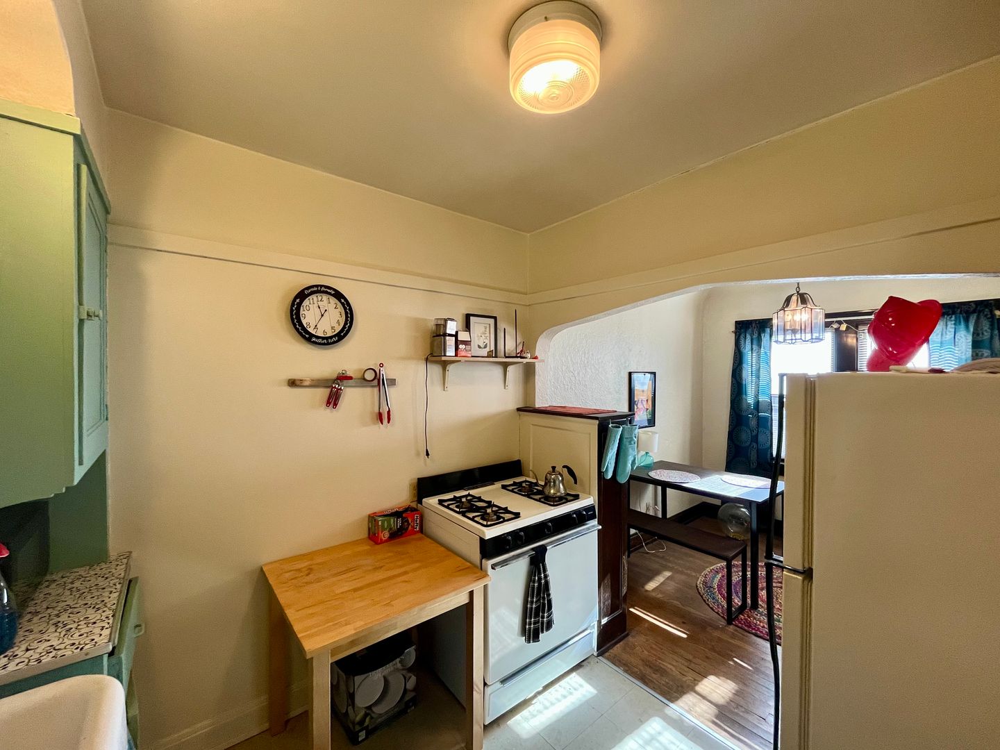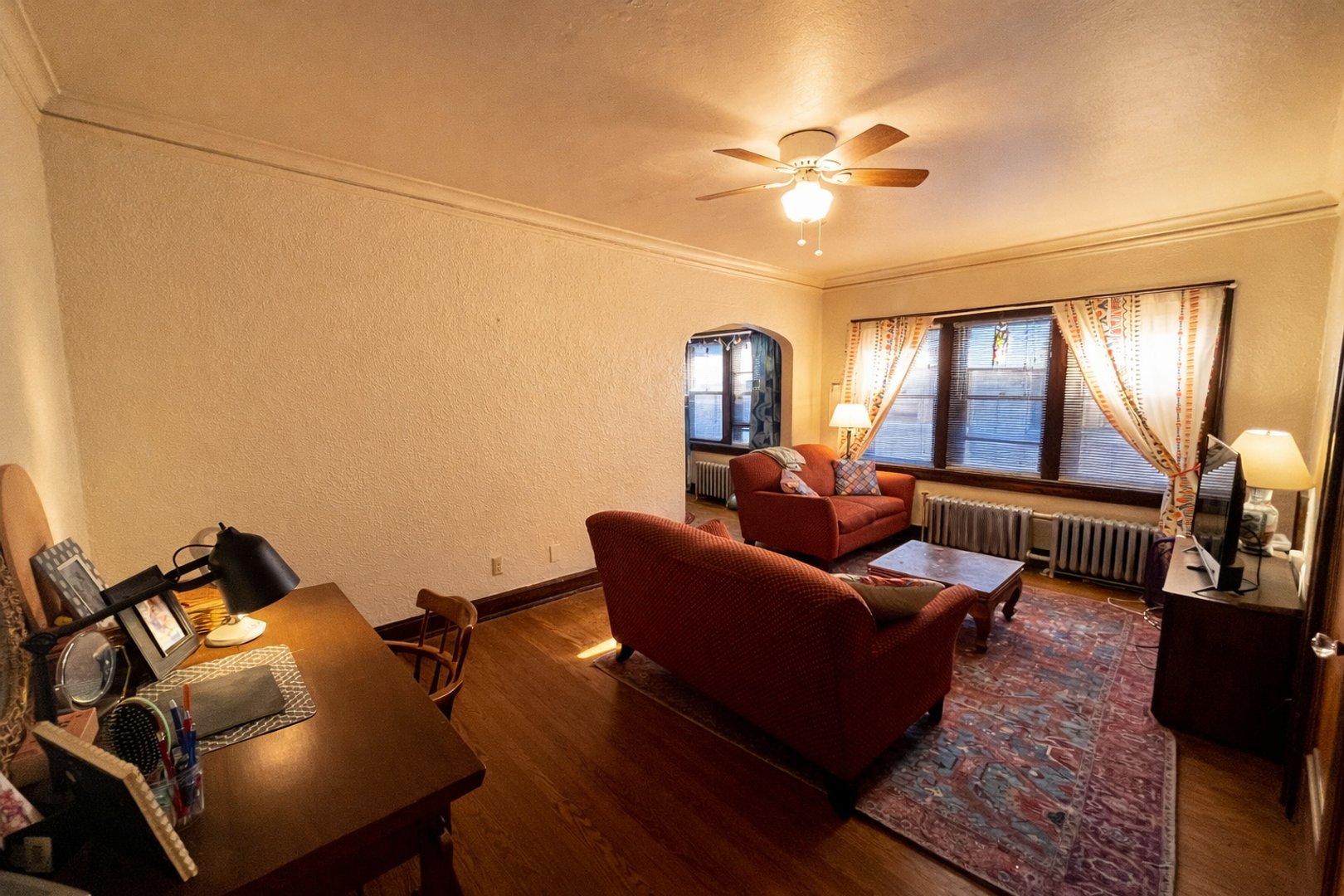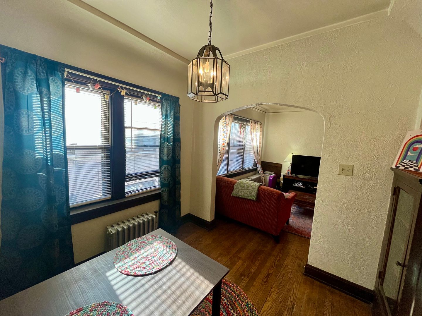 This spacious unit features vintage details, hardwood floors, a kitchen with tons of storage space, a dining area, big closets, a large living room and a cozy bedroom.