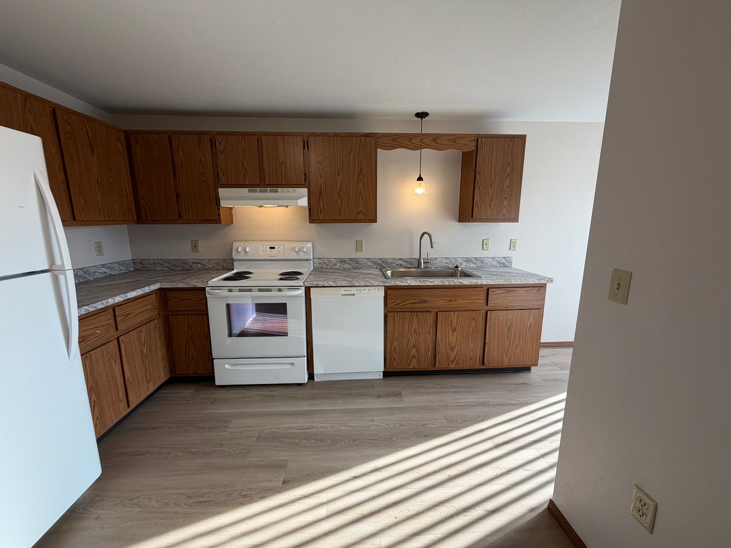 New vinyl flooring and new carpeting in bedrooms and a fresh coat of paint.